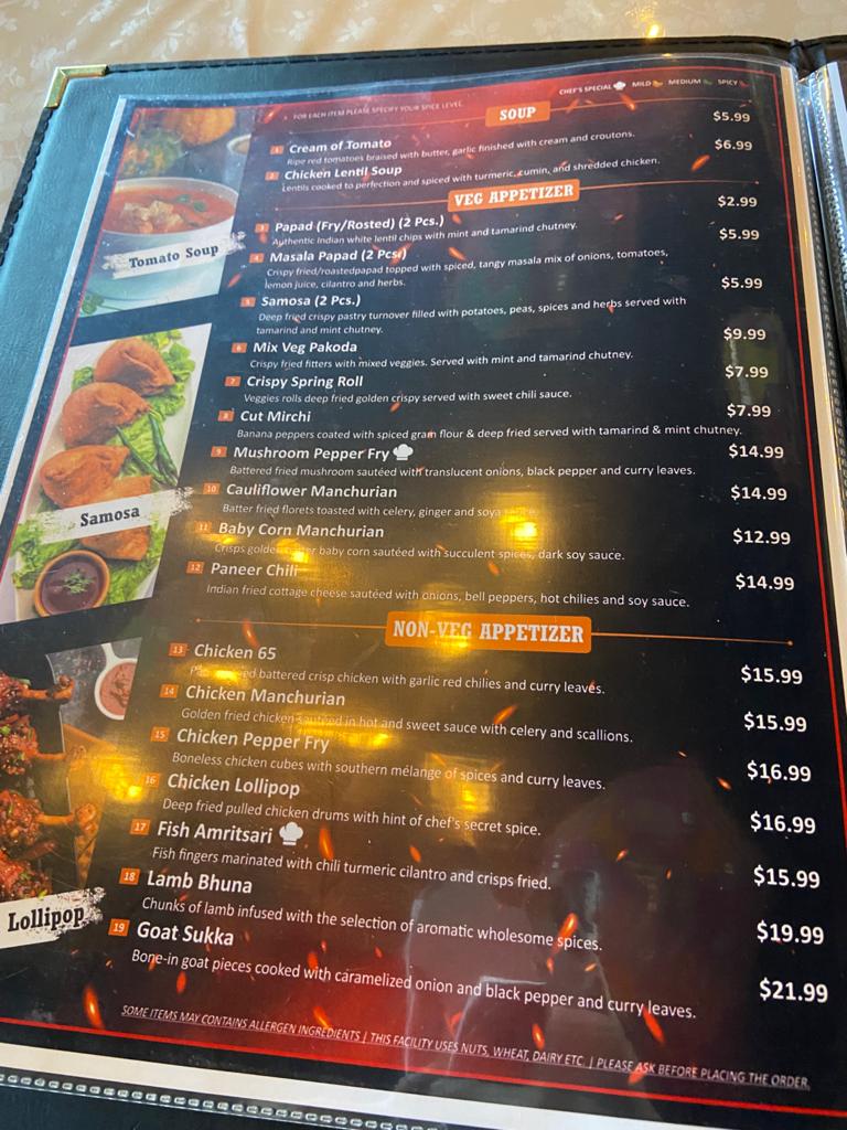 Start your culinary journey with All Day Veg Appetizers like the crisp Masala Papad or the exciting Mix Veg Pakoda, perfect for sharing. For the main course, indulge in Chef's special Cheese Butter Masala, a creamy delight or savor the richness of Kaju Curry with its luscious cashews.